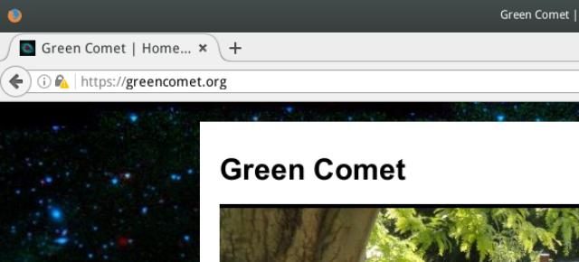 You might be wondering why Green Comet is reported as an insecure website even though it has gone SSL and has that reassuring “https” up there in the address. (Note the yellow triangle superimposed over the image of the lock.) There is no conflict in those two facts. Green Comet is secure and if you were to use a password to log in it would be encrypted. Your precious data would be hidden from that sneaky man-in-the-middle who apparently goes skulking about the internet stealing that information.