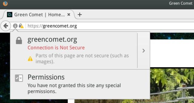 While the Green Comet website is secure, though, some of the links on it might not be. If an image links to an original on an unsecured website, for example. Or if any of the links on the page start with “http” instead of “https.”