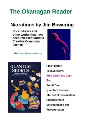 This reading is Why Don’t You Just by Sumit Dam, from the collection Quantum Shorts. Its quantum themes are the act of observation, entanglement, Schrodinger’s cat and wavefunction. Can a person jump out of a window four miles above the ground and survive?
