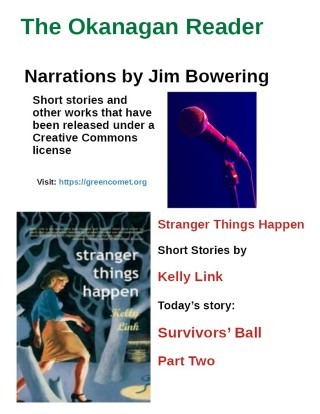 Today’s reading is part two of Survivor’s Ball, or, The Donner Party by Kelly Link. It is part of a short story collection called Stranger Things Happen. It’s about fifteen minutes long. Jasper and Serena arrive at Milford Sound and check in to their room. Everything about the hotel is odd, and Jasper learns more odd things about his traveling companion. His severe tooth pain continues.